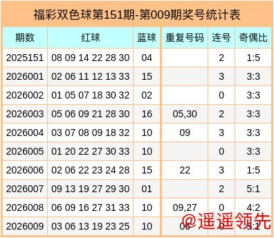 上期福彩双色球第2026009期奖号为:03、06、13、19、23、25 + 10韦德体育下载,红球奇偶比为5:1,开出1枚重号06,连码未出。